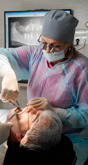 Установка имплантов в среднем занимает около 2-х часов. Сама операция проводится под местной анестезией – используется безопасная и эффективная «заморозка», но в большем количестве, чем при лечении зубов. Такого обезболивания более чем достаточно, чтобы купировать все болезненные ощущения. Тем не менее, при повышенном болевом пороге или стрессе мы применяем методы анистресс-лечения.